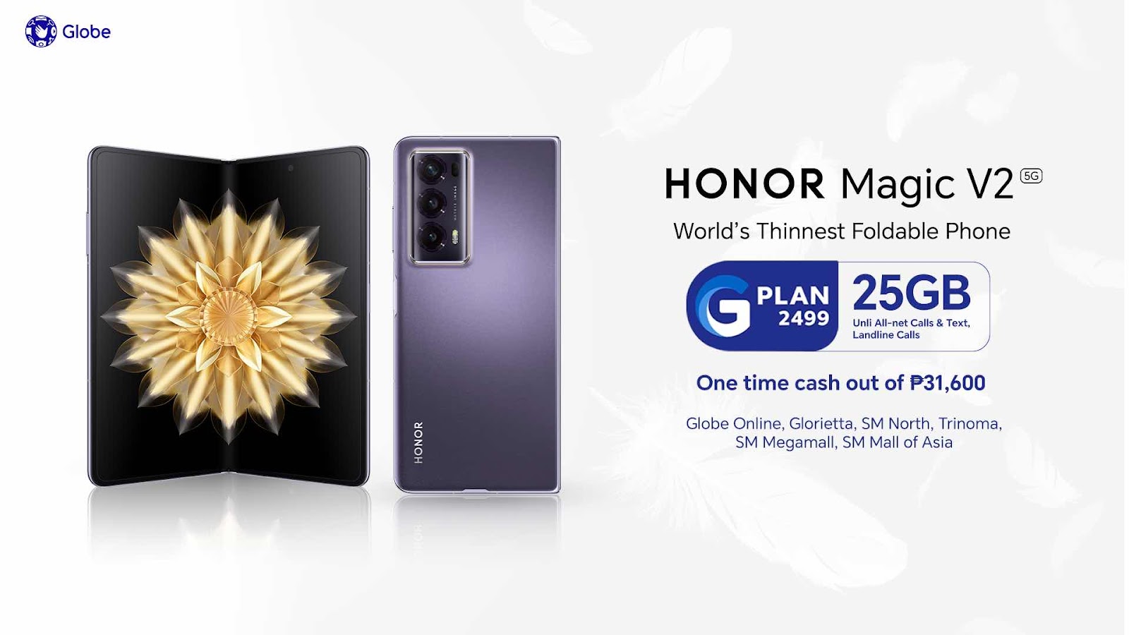 Get your hands on The World’s Thinnest Foldable Phone, HONOR Magic V2 and don’t miss this offer with Globe. Head on to Ayala Malls Glorietta, Ayala Malls Trinoma, SM North EDSA, SM Mall of Asia, SM North EDSA, or Globe Store Online athttps://bit.ly/GPLAN_HONORMagicV2 for easy access.