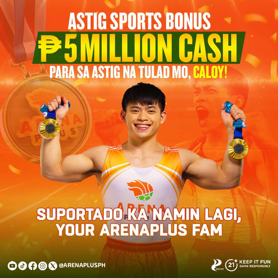 ArenaPlus joins the rest of the nation by celebrating the momentous double gold medal victory of Carlos “Golden Boy” Yulo in the 2024 Olympic Games. To honor Yulo’s historic achievement, ArenaPlus is awarding the Olympian an “Astig Hero Bonus” of ₱5,000,000 in cash. This gesture of ArenaPlus’ pride and gratitude to Yulo for representing the country in the most prestigious sporting event in the world.
