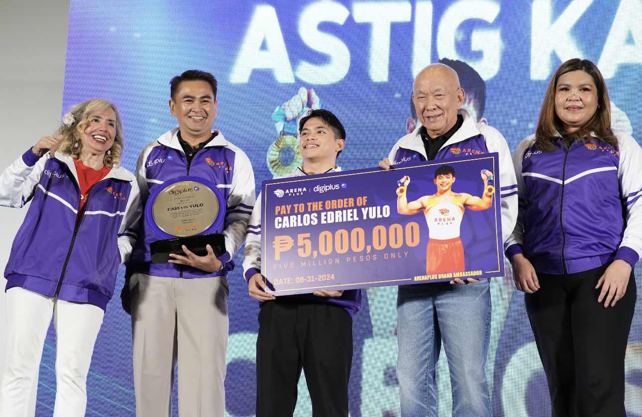 DigiPlus, ArenaPlus pay tribute to Yulo's historic olympic achievement with P5M cash gift