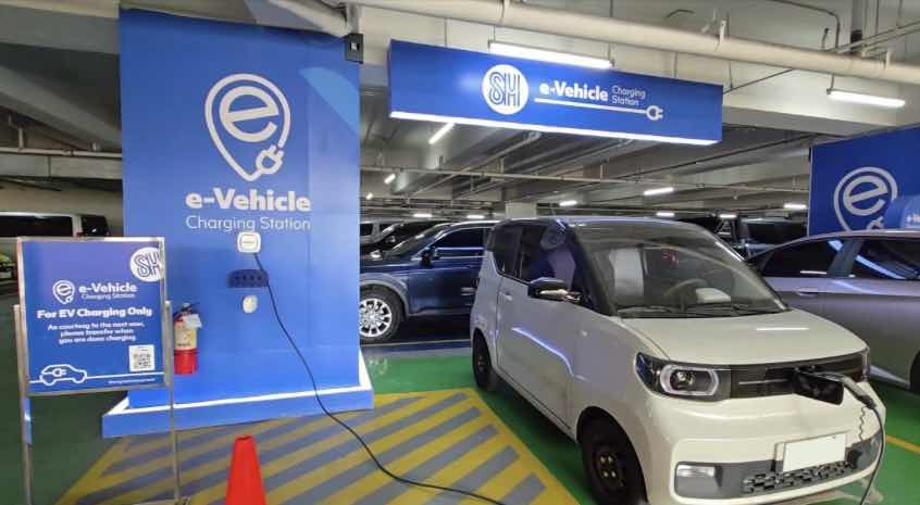 An electric vehicle charges at SM North EDSA’s Electric Vehicle Charging Station—one of 123 across 69 SM Supermalls nationwide. |