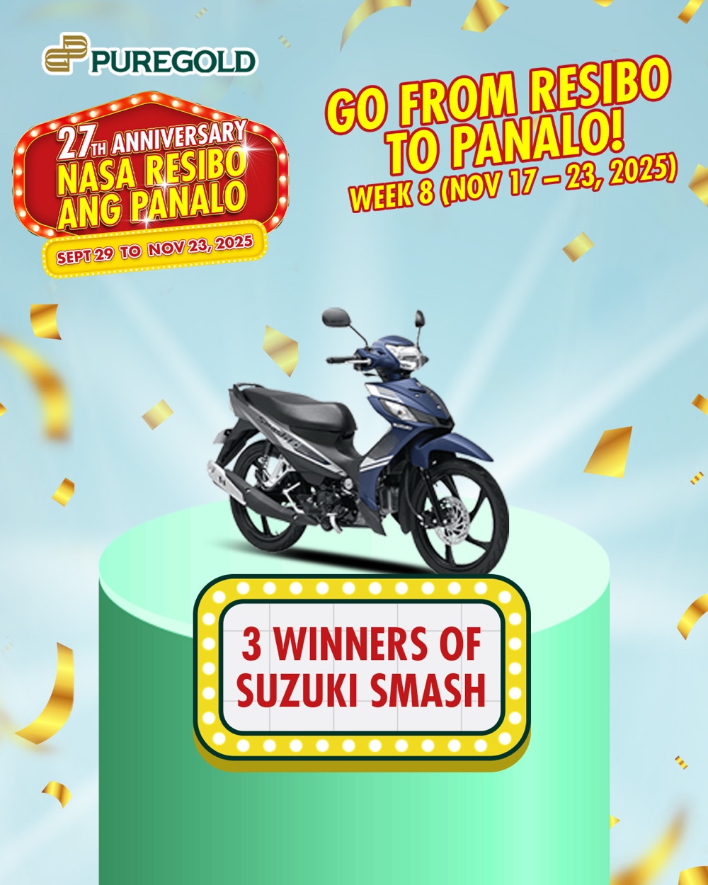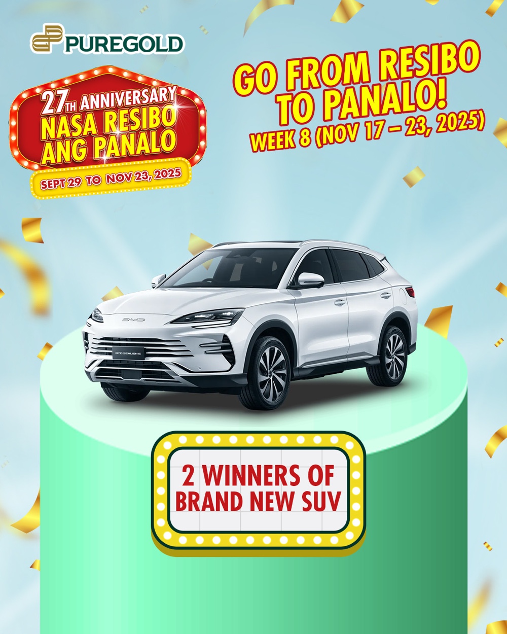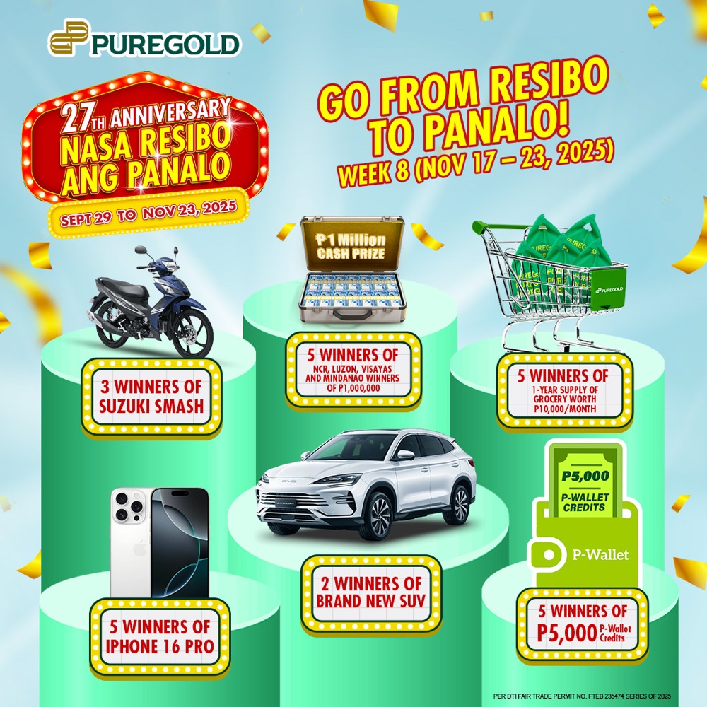Now approaching its eighth weekly draw covering the period of November 17 to 23, Puregold Nasa Resibo ang Panalo is stirring up excitement over its forthcoming major prizes that include Suzuki Smash motorcycles, brand-new BYD Sealion 6 SUVs, and several PhP 1 million cash prizes. Customers only need to present a registered receipt that meets a set minimum purchase amount.